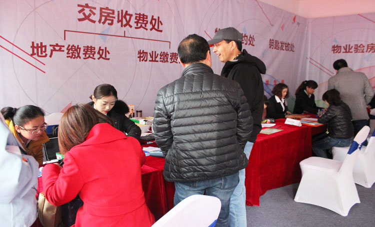 在等待區(qū)和業(yè)務(wù)辦理區(qū),現(xiàn)場有工作人員悉心準(zhǔn)備的交房流程導(dǎo)示圖,詳盡的說明了交房工作的整個(gè)流程。同時(shí),工作人員的耐心引導(dǎo)和悉心解說讓業(yè)主對整個(gè)交房工作流程有全面的了解。