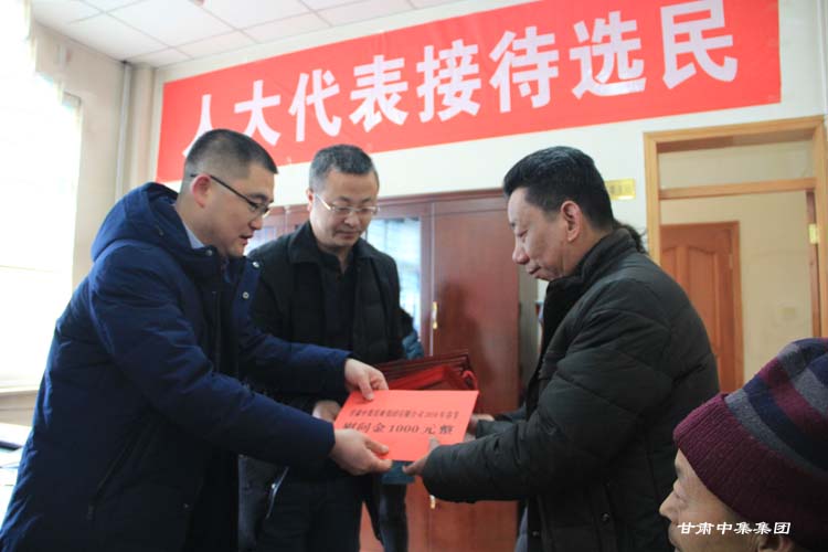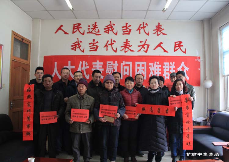 2018年2月7日上午,在2018年新春佳節(jié)即將來臨之際,甘肅省慈善總會(huì)榮譽(yù)會(huì)長(zhǎng)、安寧區(qū)人大代表、甘肅中集集團(tuán)董事長(zhǎng)周啟濤親自安排部署,并委托集團(tuán)公司黨委委員魏建峰、安 康兩位同志親自前往安寧區(qū)十里店街道辦事處,在街道黨工委副書記、人大工委主任梅鵬飛等領(lǐng)導(dǎo)陪同下,開展愛心送溫暖行動(dòng),為街道10戶特困家庭送上新年的祝福和慰問金。