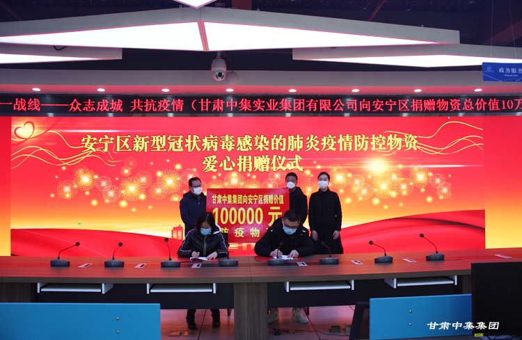 2020年2月7日上午,受甘肅中集集團(tuán)黨委書記、董事長(zhǎng)周啟濤委托,甘肅中集集團(tuán)黨委副書記董廣科、黨委委員魏建峰一行前往蘭州市安寧區(qū)人民政府向安寧區(qū)新型冠狀病毒感染的肺炎疫情聯(lián)防聯(lián)控工作領(lǐng)導(dǎo)小組捐贈(zèng)10萬(wàn)元防疫物資,為當(dāng)前疫情聯(lián)防聯(lián)控、群防群控工作貢獻(xiàn)力量。