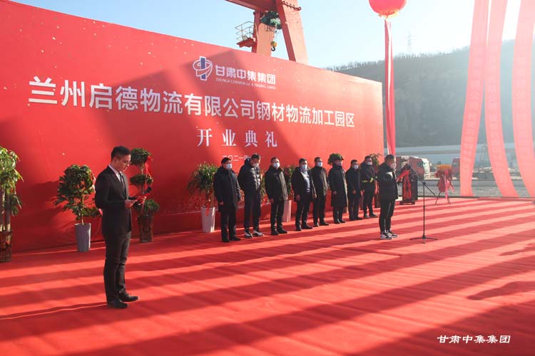 2021年1月12日上午10:18分,甘肅中集實(shí)業(yè)集團(tuán)有限公司旗下蘭州啟德物流有限公司河口鋼材物流加工園區(qū)開業(yè)慶典在甘肅物產(chǎn)集團(tuán)河口物流園隆重舉行。甘肅中集實(shí)業(yè)集團(tuán)有限公司黨委書記、董事長周啟濤隆重宣布物流園開業(yè)。酒鋼集團(tuán)、八一鋼鐵集團(tuán)、內(nèi)蒙古包鋼集團(tuán)、甘肅省物產(chǎn)集團(tuán)河口物流園、甘肅省鋼材商會、物流園轄區(qū)及公司合作伙伴等100余名領(lǐng)導(dǎo)嘉賓參加開業(yè)慶典。