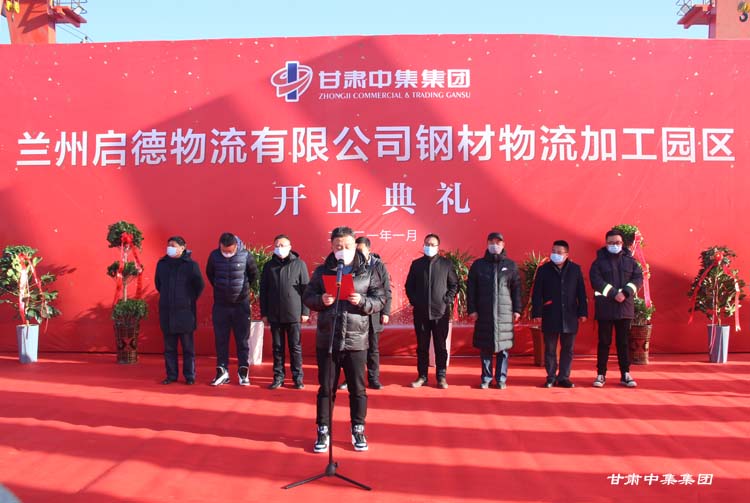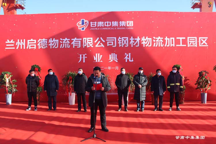 2021年1月12日上午10:18分,甘肅中集實(shí)業(yè)集團(tuán)有限公司旗下蘭州啟德物流有限公司河口鋼材物流加工園區(qū)開業(yè)慶典在甘肅物產(chǎn)集團(tuán)河口物流園隆重舉行。甘肅中集實(shí)業(yè)集團(tuán)有限公司黨委書記、董事長周啟濤隆重宣布物流園開業(yè)。酒鋼集團(tuán)、八一鋼鐵集團(tuán)、內(nèi)蒙古包鋼集團(tuán)、甘肅省物產(chǎn)集團(tuán)河口物流園、甘肅省鋼材商會、物流園轄區(qū)及公司合作伙伴等100余名領(lǐng)導(dǎo)嘉賓參加開業(yè)慶典。