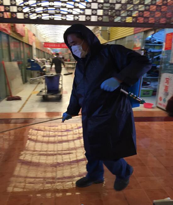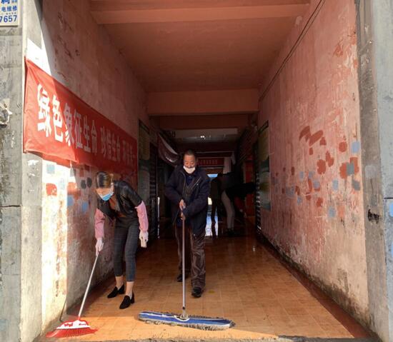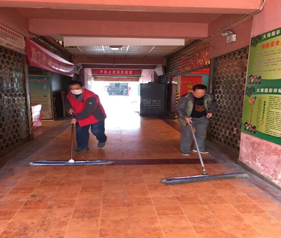 行動(dòng)中,每個(gè)人都各司其職,有條不絮的進(jìn)行著,有的拿著掃帚、簸箕、拖把、水盆等,對(duì)市場的通道和墻面、地面、及擺放的物品進(jìn)行整理和清潔。