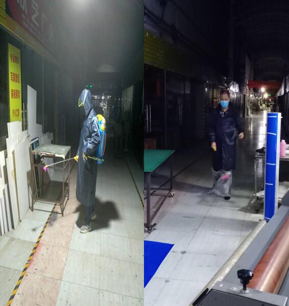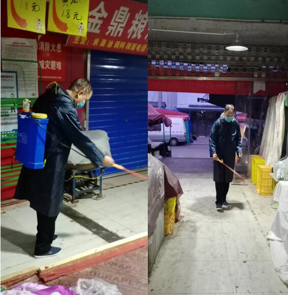 我們市場(chǎng)的消毒工作還在繼續(xù)進(jìn)行,每天早晚2次的消殺,加強(qiáng)市場(chǎng)內(nèi)環(huán)境衛(wèi)生的管理,做好攤位和經(jīng)營場(chǎng)所的衛(wèi)生,增加通道、廁所等公共區(qū)域的清掃保潔頻次,我們的保安人員從來沒有放過市場(chǎng)內(nèi)的每一個(gè)角落,并時(shí)刻提醒我的商戶和顧客絕不能掉以輕心,不能麻痹大意。