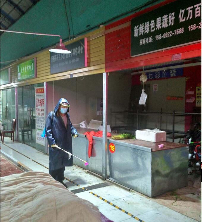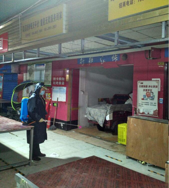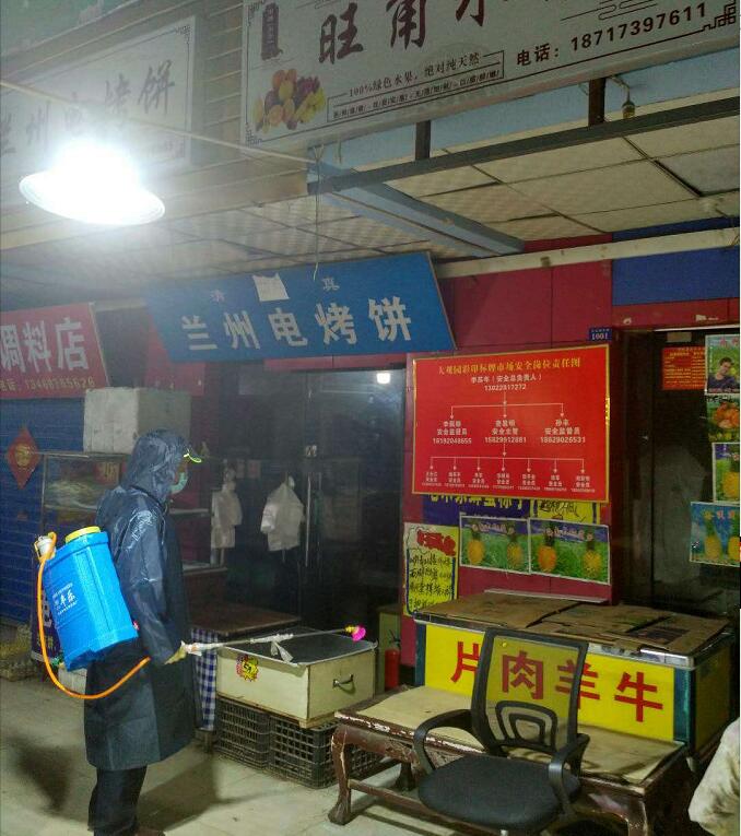 對垃圾箱等容易滋生病毒和蚊蟲的區(qū)域多次噴灑,為第二天的市場營業(yè)做好前提保障。