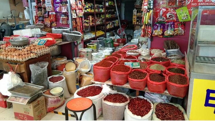 所有菜品都一目了然,干貨區(qū)、水產(chǎn)區(qū)、鮮肉區(qū)等分區(qū)細(xì)致,一應(yīng)俱全;雖然人來人往,但地面并無油垢也不黏膩,清爽而防滑;每家每戶都統(tǒng)一新制了不同的醒目門頭標(biāo)志,相鄰的兩家門頭顏色也不盡相同有黃色的、綠色的、紅色的、很是醒目,也很具有代表性。肉類、禽蛋、蔬菜、鮮魚……不同區(qū)域的標(biāo)識(shí)牌張貼在標(biāo)牌上,清晰分明,讓人感覺非常舒服,開心。整齊劃一的柜臺(tái)上蔬果飄香,擺放有序,市民與攤主有問有答,按需選購,濃濃的生活氣息撲面而來。