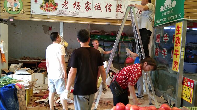 市場(chǎng)的地面衛(wèi)生環(huán)境也大大改善,重新粘貼的小心地滑等溫馨提示一目了然。大家都從心底覺得非常溫馨。整治過程的有序推進(jìn)離不開店主商戶的高度配合,撿垃圾、擦瓷磚、排污水……商戶們有條不紊地參與到重建整合中,共同助力蔬菜區(qū)蛻變重生。