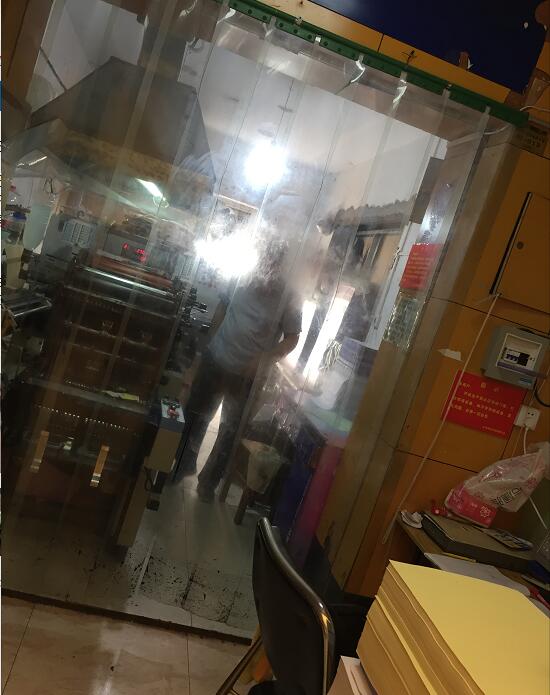 “開機器前環(huán)保設(shè)備設(shè)備是否開啟、運行,前后門是否關(guān)閉、簾子是否拉上、油墨桶是否放在指定的箱子內(nèi)封閉存放、環(huán)保罩子上的衛(wèi)生是否打掃干凈等,都是我們市場工作人員日常環(huán)保檢查工作中的重中之重,也是我們對市場商戶的負(fù)責(zé)?!?