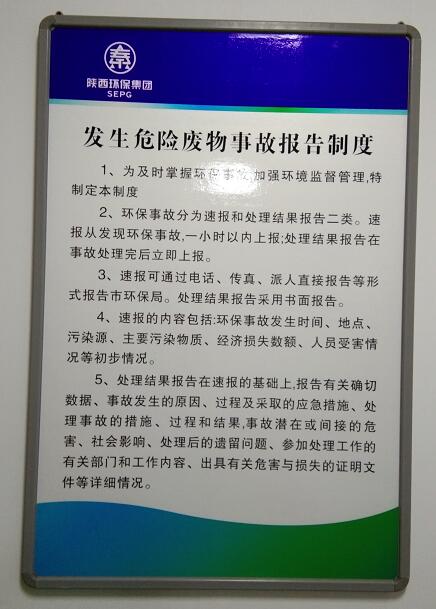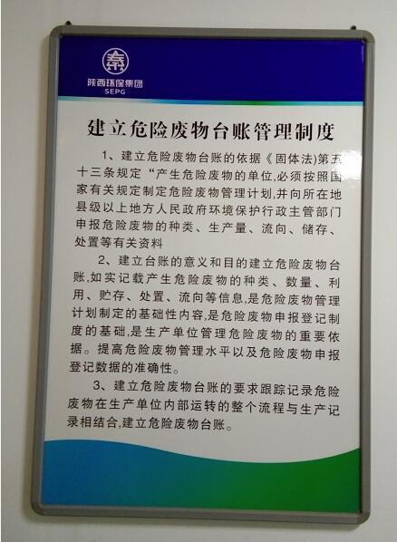 地面衛(wèi)生一塵不染,各種規(guī)章制度、流程懸掛整齊。,桌面上危廢物品轉(zhuǎn)移單、危廢物品登記臺(tái)賬有據(jù)可查,相關(guān)的危廢學(xué)習(xí)資料隨手可翻閱。