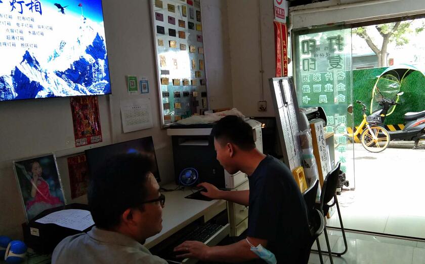 在大觀園彩印市場有一個不笑不說話的年輕人,他叫龐博,是北排1156號商鋪的店主。