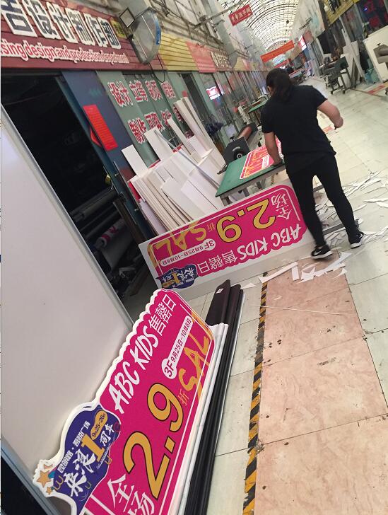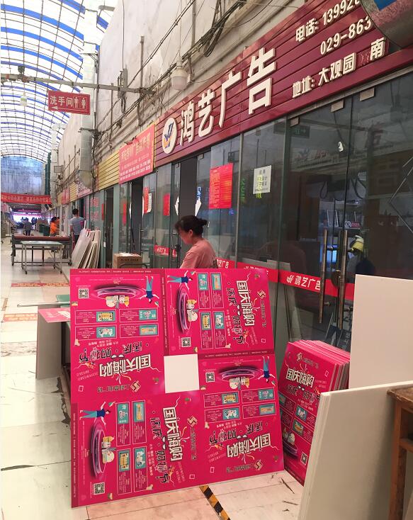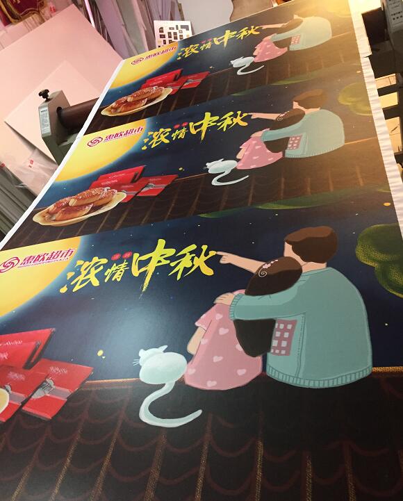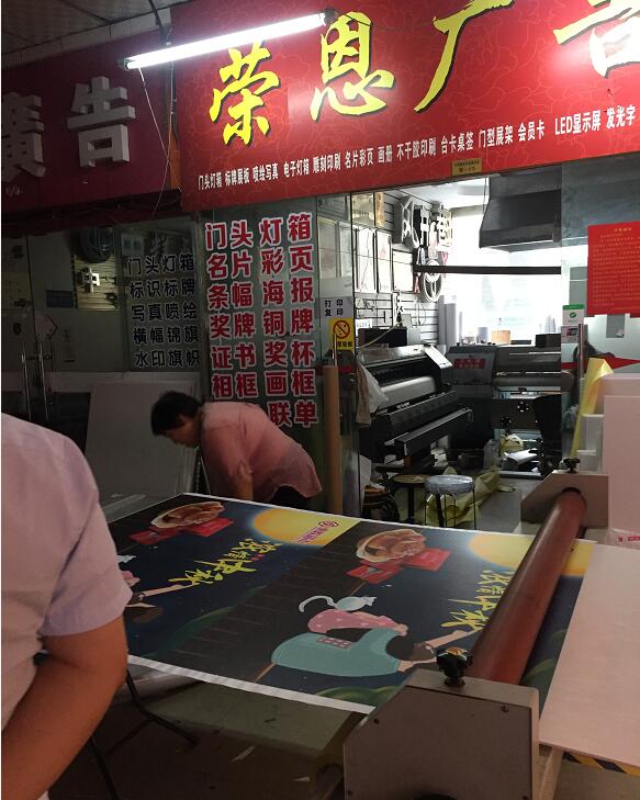 日夜趕工,大部分商戶都是給商場(chǎng)、電器品、家居品等做一些促銷品的宣傳廣告,有的是噴繪畫面、有的是寫真廣告、有的是易拉寶、展架、還有的更有創(chuàng)意,有各種形狀的推車、動(dòng)物形狀的展架等等,更火暴的是中秋節(jié)的展板,月餅禮盒等。