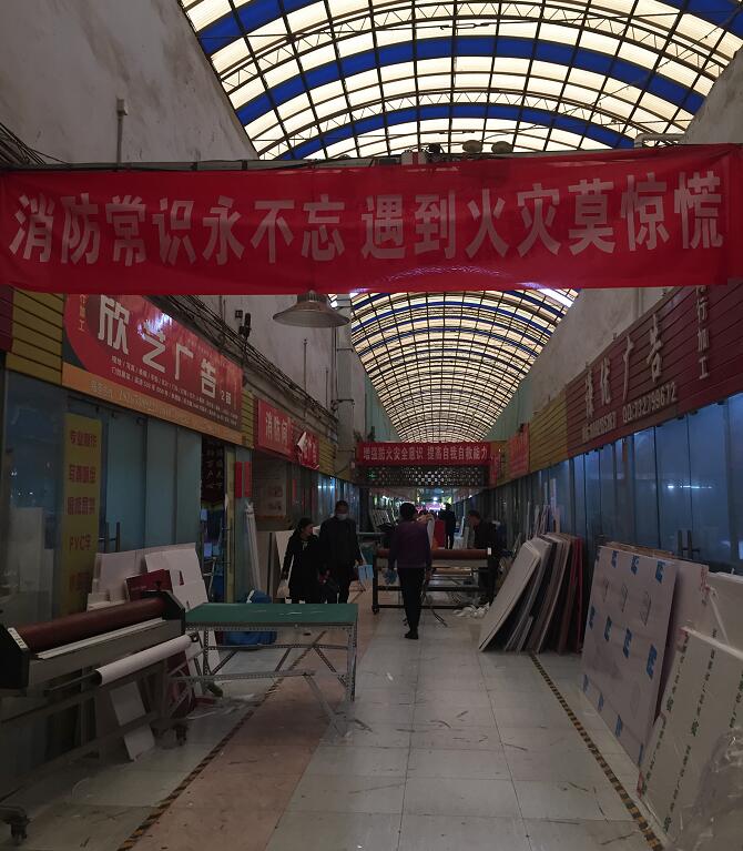 市場(chǎng)永遠(yuǎn)把消防安全放在第一位,也監(jiān)督商戶時(shí)時(shí)刻刻記著安全的重要性,市場(chǎng)內(nèi)到處掛著消防安全條幅,要求商戶每家準(zhǔn)備2個(gè)合格的滅火器排放在便于拿取的位置,禁止使用小太陽(yáng)或功率大的電器,廢棄的材料盡快處理禁止堆放在室內(nèi)。