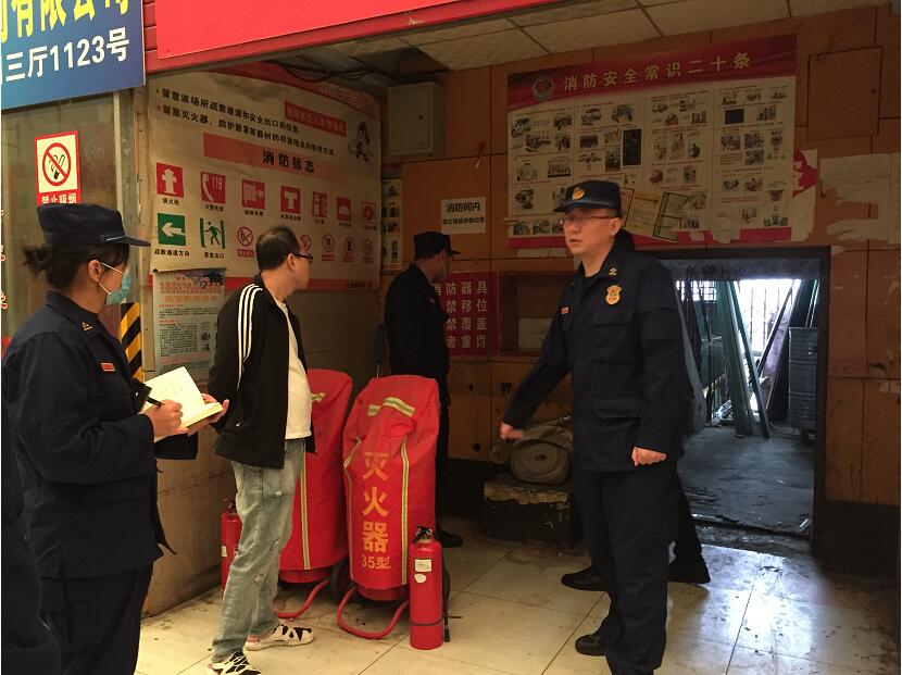 檢查過(guò)程中,對(duì)市場(chǎng)消防間滅火器仔細(xì)檢查了檢測(cè)日期、壓力等問(wèn)題,消防栓、是否完好無(wú)損,水的壓力是否能夠達(dá)到標(biāo)準(zhǔn)。