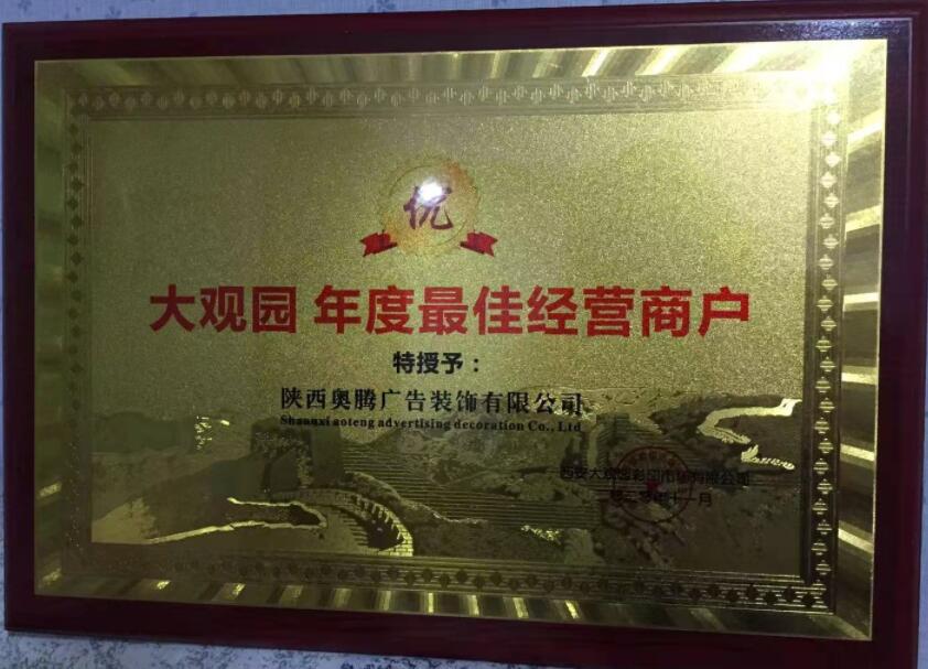 經(jīng)過(guò)商戶們大力的宣傳及公平、公開(kāi)、公正的海選,陜西奧騰廣告裝飾榮獲一等獎(jiǎng),由衷地祝賀奧騰廣告裝飾在未來(lái)的發(fā)展中展翅高飛,鵬程萬(wàn)里。