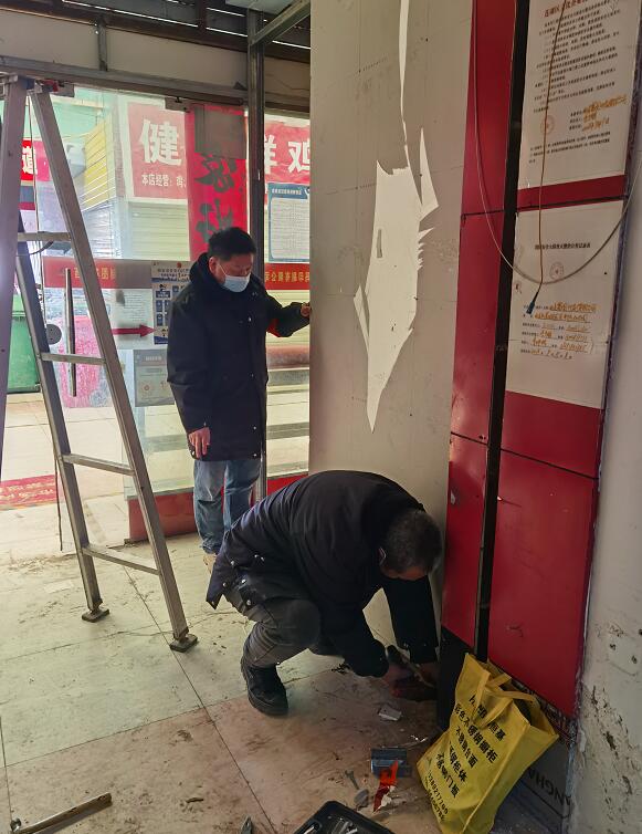 裝上嶄新的玻璃門、換上安全的手拉門鎖、重新規(guī)劃走線路、隔墻、拆墻、忙的不可開交,就是為了讓每一家商戶的安全更加牢固,讓每一家的環(huán)境更加敞亮。
