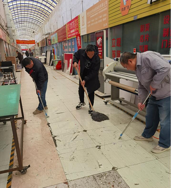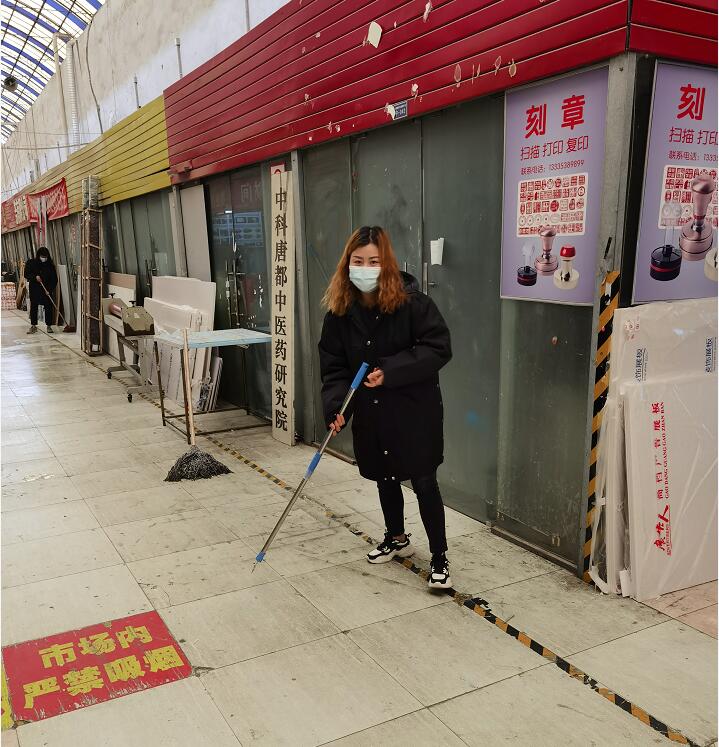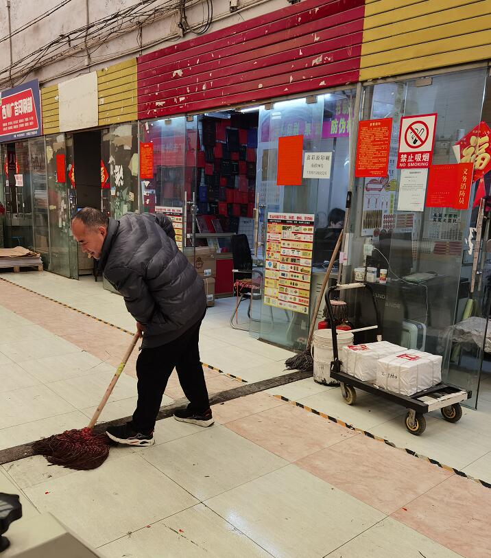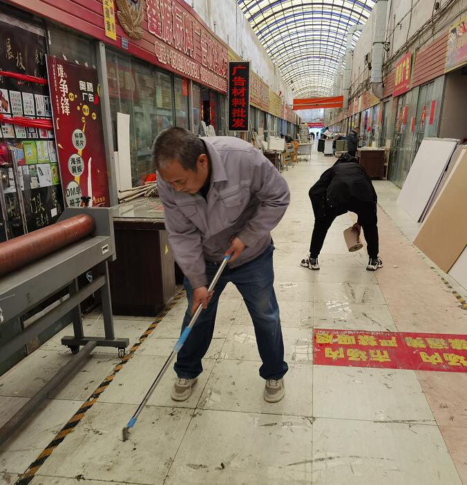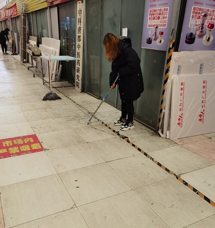 所以大觀園市場辦全體工作人員在今天全力清掃著地面的衛(wèi)生,部分熱心的商戶們也加入了大掃除的戰(zhàn)斗,大家同心協(xié)力,沒有絲毫的抱怨,都全身心地為商戶們服務著,也為市場的整潔增添著光彩,有好多商戶們也自覺地清掃著門前的衛(wèi)生,一片溫馨的場景,大家都從心里希望市場道路更干凈,環(huán)境更優(yōu)雅。