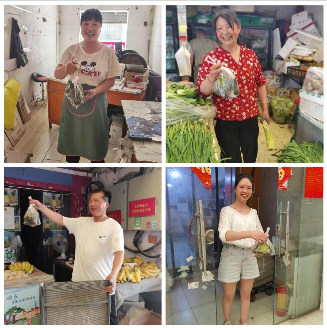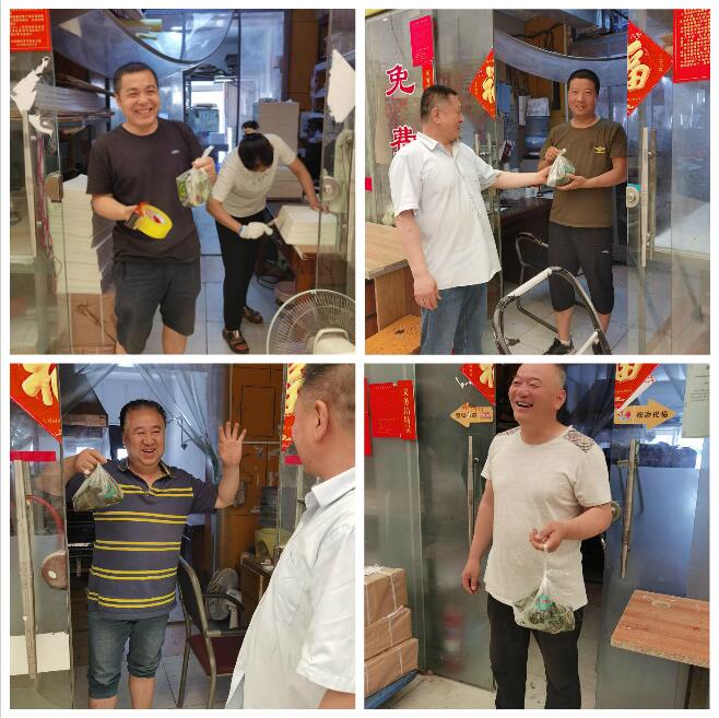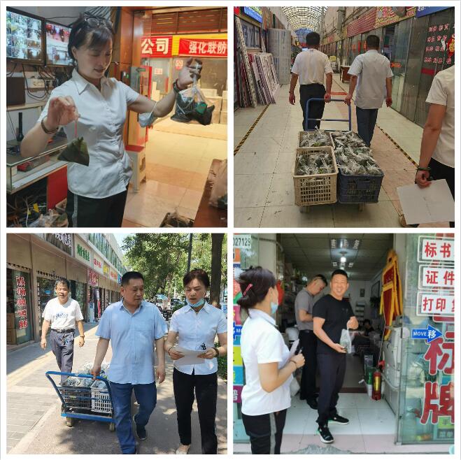 只要開門的商戶,市場辦工作人員都一家一家親手送到祝福!把愛送給百家商戶,留下滿市場的清香。