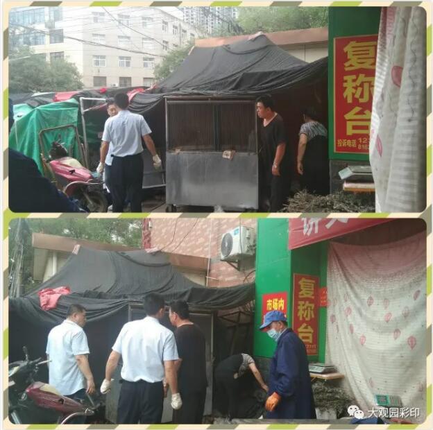 近2個(gè)小時(shí)的忙碌違建帳篷已拆除,稍后垃圾清運(yùn)車會(huì)將垃圾運(yùn)走,還市場(chǎng)一片凈土。相信經(jīng)過大家共同的努力創(chuàng)衛(wèi),大觀園彩印市場(chǎng)有前景會(huì)越來越繁榮,大家的腰包也會(huì)越來越鼓起來!