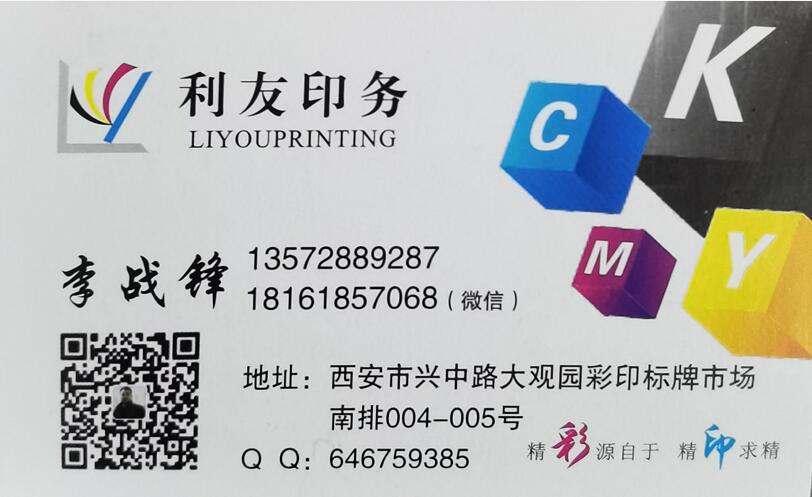 西安大觀園彩印標(biāo)牌市場,西安印刷廠,西安印刷包裝,西安廣告公司南排004-005號利友印務(wù)李戰(zhàn)鋒李老板就是一位自律又優(yōu)秀的企業(yè)家,因為,他把市場當(dāng)做家。