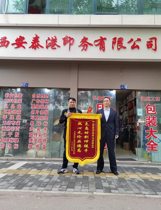 雖然是一面小小的錦旗,但彰顯了市場(chǎng)辦的感恩之情,市場(chǎng)辦感恩商戶們的奉獻(xiàn),感謝商戶們的配合,錦旗雖小,意義非凡,在有限的空間內(nèi),大觀園彩印市場(chǎng)網(wǎng)絡(luò)部也全力宣揚(yáng)兩家商戶的高尚品德,在西北印刷網(wǎng)上醒目位置刊登廣告位為你們推廣宣傳,祝你們生意紅火騰騰起,財(cái)運(yùn)亨通步步高!