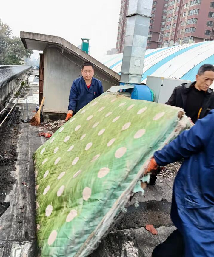 看看不知道誰(shuí)扔下的床墊,還有臟亂的鐵皮,用過(guò)的沙袋,廢棄的磚頭,沒(méi)流通的臭水,讓人都無(wú)處下腳整理,但市場(chǎng)辦工作人員沒(méi)有一句怨言,而是全力以赴地清掃整理,安裝了新的環(huán)保設(shè)備煙道,把堆積的雜物都一堆堆整理運(yùn)下樓道,二三個(gè)小時(shí)的辛苦,換來(lái)了全新的面貌,樓頂整潔如初,再?zèng)]有臟亂差的現(xiàn)象,苦了累了工作人員,幸福了咱們大觀園全體商戶。
