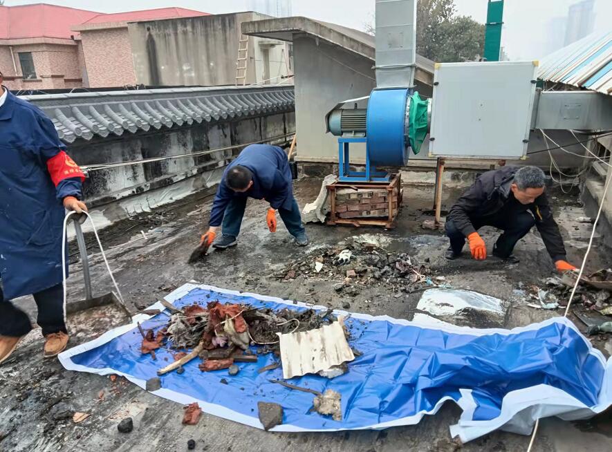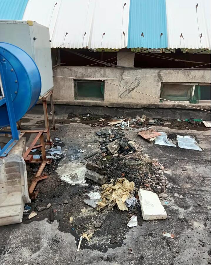 在此次的檢查工作中,二樓上的環(huán)保設(shè)備活性炭的定期更換工作經(jīng)檢驗(yàn)合格,但排放器周?chē)l(wèi)生不太令人滿意。二樓由于是敞開(kāi)式環(huán)境,風(fēng)吹日曬雨淋,雜物樹(shù)葉等雜物由于長(zhǎng)期堆放,發(fā)霉發(fā)臭,前段時(shí)間的下雨也讓角落積累了污水,為了更好的服務(wù)市場(chǎng)環(huán)境治理,同時(shí)也為了讓消防危害降低為零,查經(jīng)理協(xié)同工作人員對(duì)整個(gè)樓頂進(jìn)行了大掃除,徹底全面清掃,將長(zhǎng)年累積的雜物、磚頭、床墊、礦泉水瓶子、花盆等等雜物清理干凈,還樓頂一個(gè)干凈整潔的場(chǎng)所!