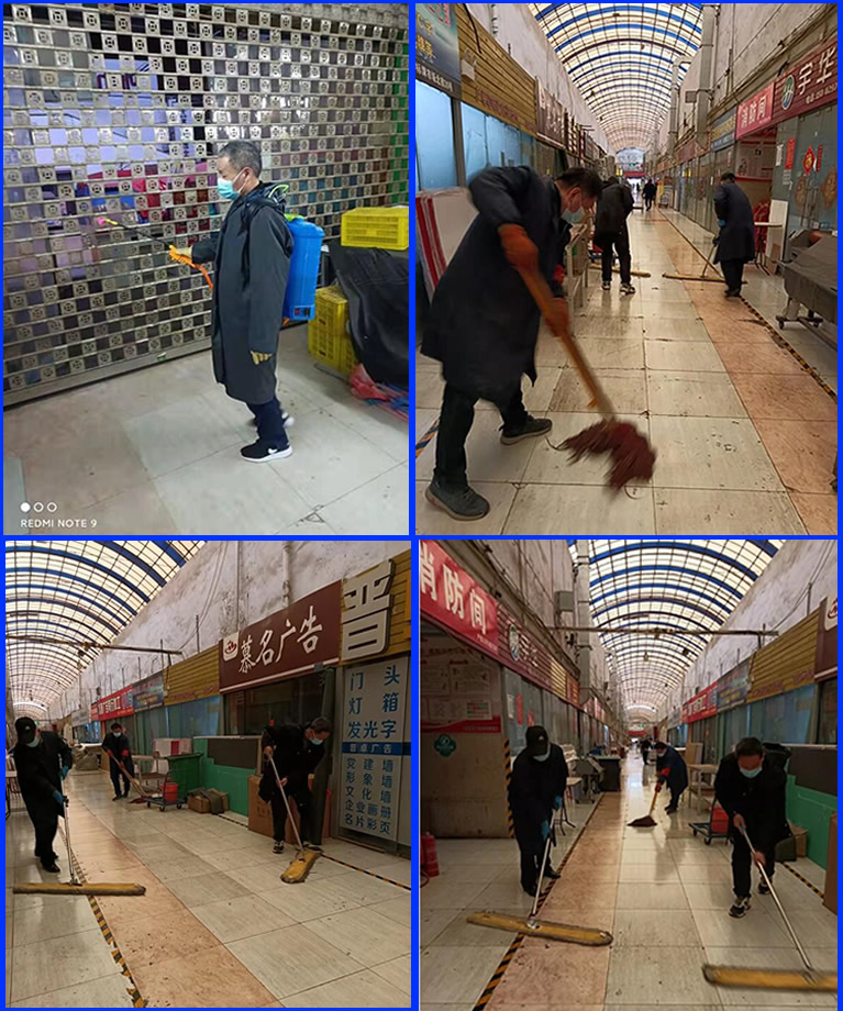 復工的第一天,西安大觀園彩印標牌市場,西安印刷廠,西安印刷包裝,西安廣告公司市場辦的工作人員早早地來到市場對市場進行了全面的消殺,用84消毒液將市場通道齊齊的噴灑了一遍,拖地、清掃垃圾、以嶄新的環(huán)境面貌為商戶們的歸來做好防疫準備。