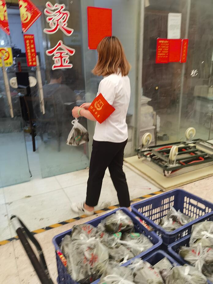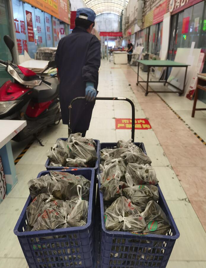 一大早,市場辦就拉著滿滿幾筐粽子給商戶們一家一家親自送到手上,讓大家在端午佳節(jié)品嘗到香甜的美味。