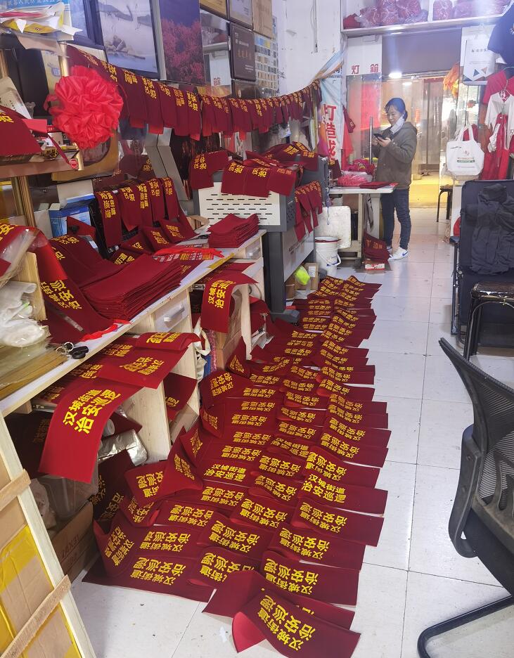 大觀園彩印市場(chǎng)北排:1174#蕊鑫廣告,這可是我們市場(chǎng)專業(yè)生產(chǎn)加工制作治安巡邏袖標(biāo)的明星專業(yè)戶,蕊鑫廣告主要經(jīng)營(yíng)制作旗幟,錦旗,條幅等,你只要路過他家門口,永遠(yuǎn)都是一片中國(guó)紅,紅色的喜慶牛氣沖天,來沾沾喜氣吧!喜歡高檔旗幟,錦旗,條幅的,就直接來吧!他們的產(chǎn)品可水洗,不褪色、而且符合國(guó)際綠色環(huán)保標(biāo)準(zhǔn)。