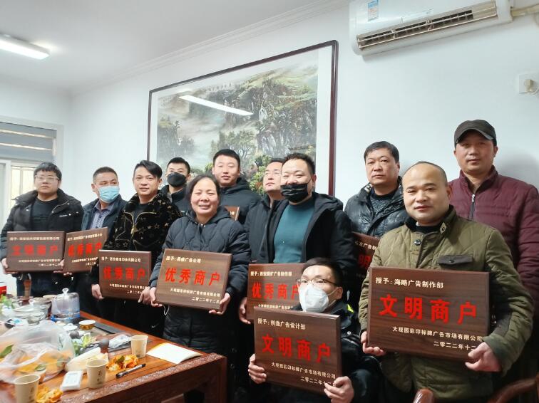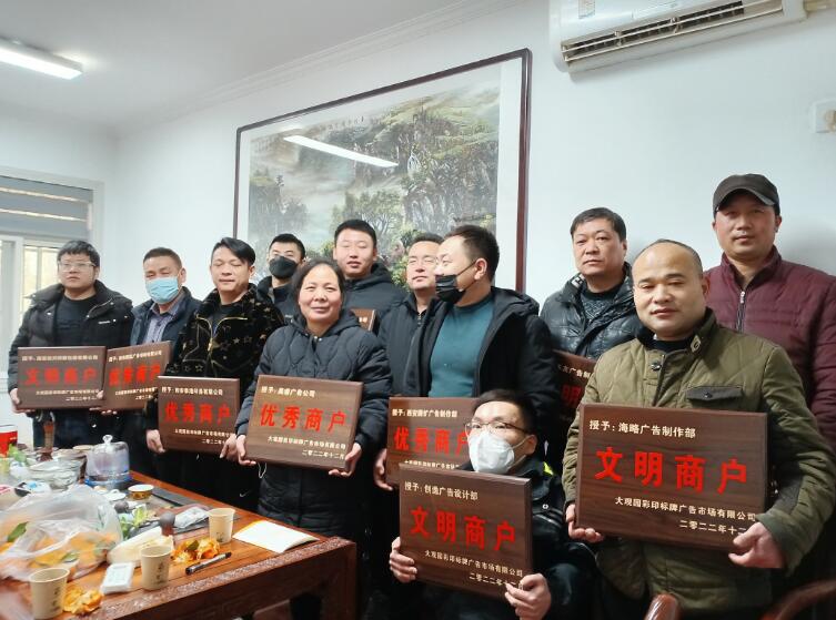 一年一度的“優(yōu)秀商戶”及“文明商戶”的評選也告一段落了,大家也都開始準備回家過年了,衷心祝愿我們大觀園彩印廣告市場的商戶們家興業(yè)興財源興,人旺體旺精神旺,沒有獲獎的商戶們也不要有消極心態(tài),來年大家好好努力經營,市場辦會給大家備好更高端的獎品等著親們來領。