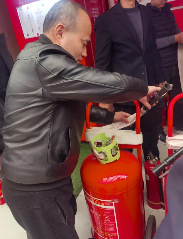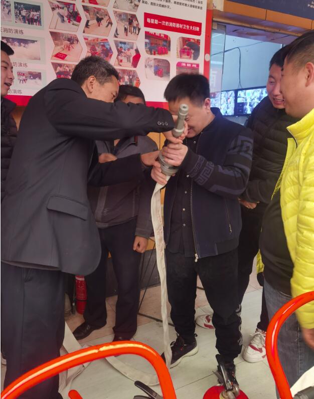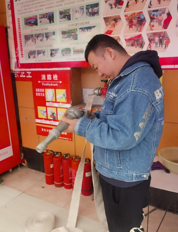 講解結(jié)束后,義務(wù)消防員在查經(jīng)理的指導(dǎo)下,操作了消火栓水帶連接出水、滅火器快速處置“火情”等技能的實操實訓(xùn),真槍實彈感受了滅火器的滅火效果及操作要領(lǐng)。