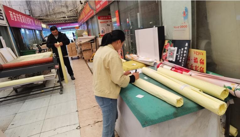 近些日子,大觀園彩印廣告市場中排:005#.005+1#.006#號瑞明廣告的張俊張老板就比較用心,因?yàn)樘旃惶雒?,連綿的小雨下個(gè)不停,做好的包裝產(chǎn)品不僅要認(rèn)真打包好,還要多裹上幾層防水的材料,張老板親自上手,每個(gè)宣傳海報(bào)成品都是里三層外三層的打包好,準(zhǔn)備在雨小一點(diǎn)的時(shí)候就給客戶盡快送貨。