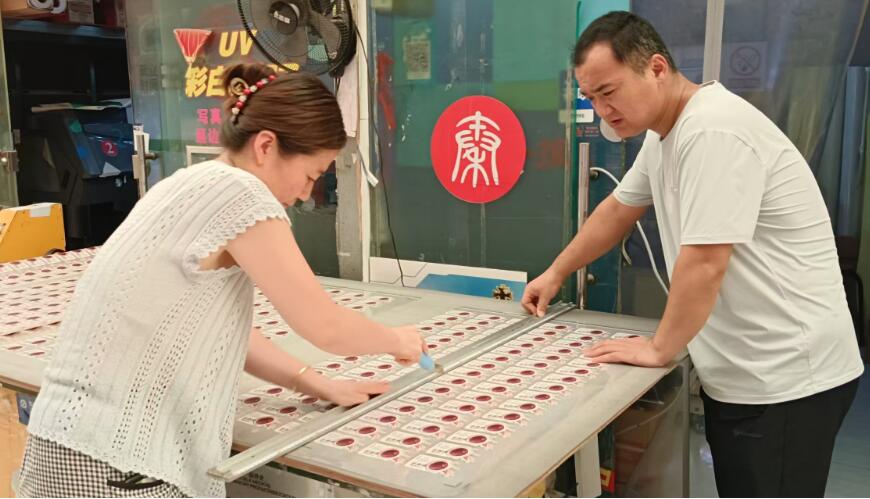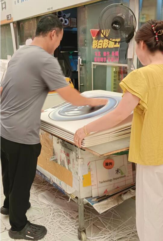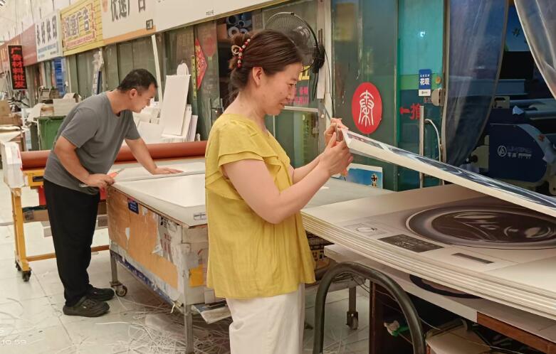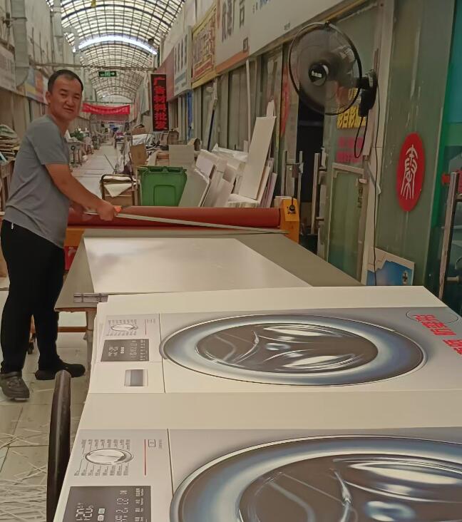 這不,剛接了一批彩白彩印制的廣告圖片急活,還有一批洗衣機外殼的KT板急活,夫妻二人馬不停蹄地開機趕制,一天內把KT板訂單制作完畢,看著擺放好的成果,夫妻二人終于是舒了一口氣。