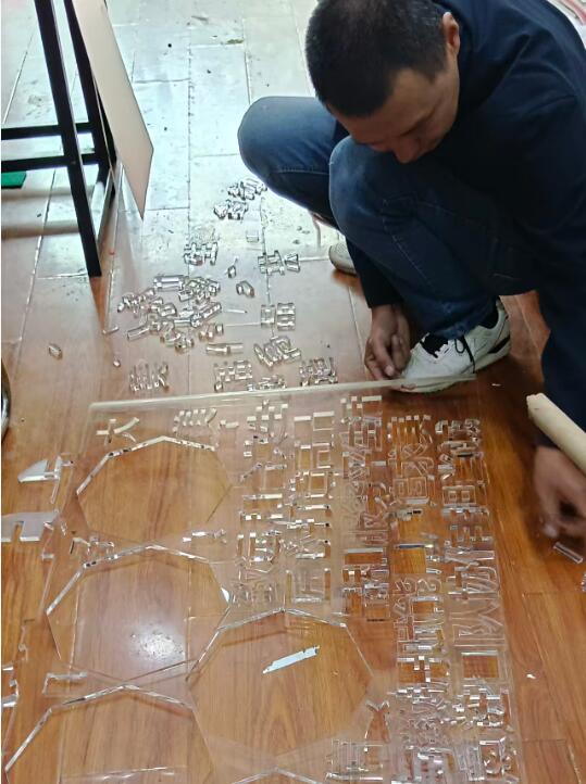 這次的文化墻設(shè)計制作,積聚了李老板無數(shù)的心血,一小塊一小塊的雕刻再規(guī)整好,這都要有過硬的技術(shù)支撐,因此,如果你對亞克力制作的文化墻概念不太清楚,不知道如何下手操作的,想更多深入學(xué)習(xí)的,還有要制作的也請直接來三廳北排春蕾廣告找李老板溝通溝通,畢竟,遇良師、得良友、事半功倍。