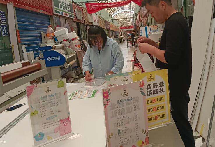 往市場通路中走一下,中排59#的晟龍廣告老板還在辛勤地安裝,粘貼宣傳展板,估計也是賺個盆滿缽滿,賺錢的感覺真爽?。?