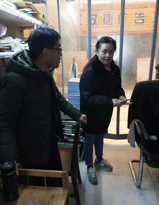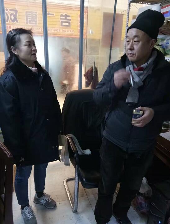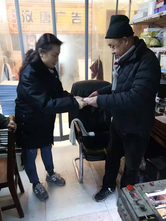12月16日下午大觀園市場辦的查主管和辦公室的孫師來到了南排1115號的張平文的店鋪,其目的是代表市場送去了一份愛心。