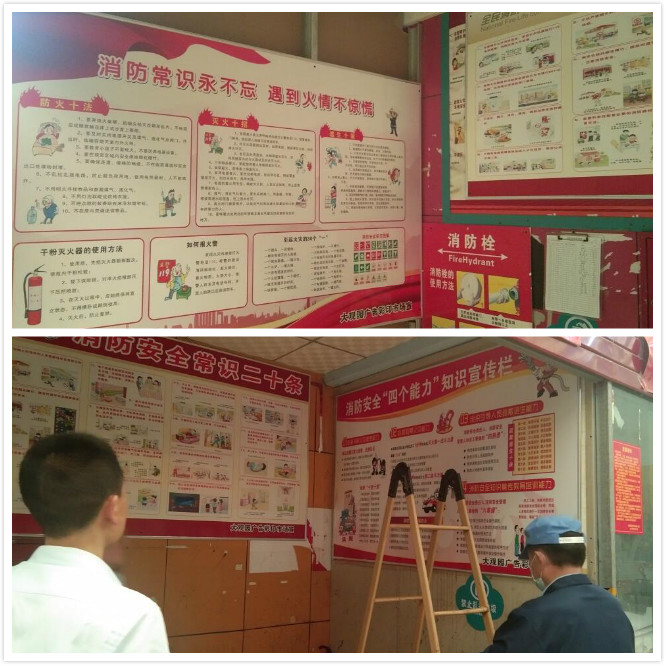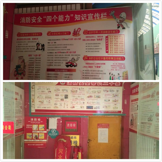 將市場(chǎng)的義務(wù)消防員組織學(xué)習(xí),將全新的消防知識(shí)制作成文字展板重新粘貼,市場(chǎng)里的6個(gè)消防間已煥然一新。時(shí)刻讓人們第一眼就能看到市場(chǎng)辦對(duì)防火消防工作的重視度,也更好的提醒每一位商戶們消費(fèi)者禁煙禁火,市場(chǎng)工作人員在日常的巡檢中不斷提醒商戶用電安全注意事項(xiàng),同時(shí)也提醒商戶勞逸結(jié)合。