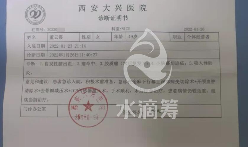 活著,是每一個人最渴望的事情,活著,生命才有意義??墒俏覀兇笥^園彩印市場商戶董云霞女士,卻在ICU醫(yī)院因為重癥腦出血面臨天難險阻,她想要清醒,想要好好的活著,想要再和她親愛的女兒好好過一個平安的新年,想要和大家在一起奮斗著追逐著自己的夢想,但她卻在西安大興醫(yī)院的重癥監(jiān)護(hù)室里靜靜的躺著,她需要我們。
