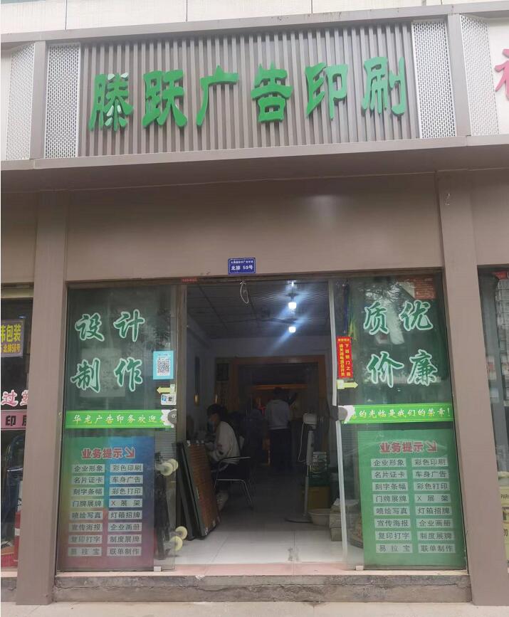 西安騰躍廣告有限公司在2012年將華龍印務(wù)和晟龍廣告整合注冊而成,現(xiàn)有進(jìn)口海德堡四色印刷機(jī)貳臺、寫真機(jī)壹臺、其他輔助設(shè)備數(shù)臺,共有正式員工8人、輔助人員多名,從事設(shè)計(jì)、印刷制作,廣告標(biāo)牌。