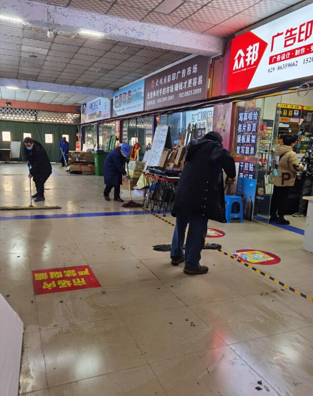 新年新氣象,新年啟新程,大觀園彩印廣告市場(chǎng)全體工作人員齊聚一堂,為迎接商戶們?nèi)鎻?fù)工生產(chǎn)有個(gè)好兆頭,給商戶營(yíng)造一個(gè)干凈舒適衛(wèi)生的環(huán)境,一大早就開(kāi)始打掃市場(chǎng)衛(wèi)生,西安印刷廠,西安彩印,西安印刷包裝,西安包裝設(shè)計(jì),西安印刷,西安大觀園彩印標(biāo)牌市場(chǎng),西安印刷廠家,西安印刷包裝,西安廣告公司西安大觀園彩印標(biāo)牌市場(chǎng)辦以整潔舒適放心的市場(chǎng)面貌恭祝商戶們2023年邁出高質(zhì)量發(fā)展新步伐。